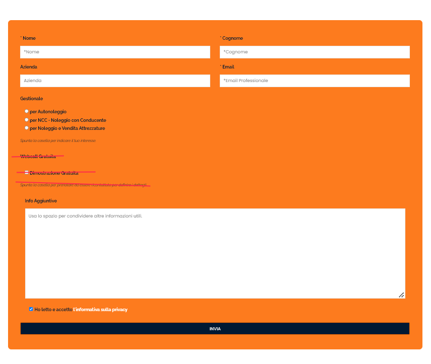 ⚠️ Fa fede il form esteso e quanto definito tra Rossella e Antonio. Rimuovere check box Webcall Gratuita dal modulo.